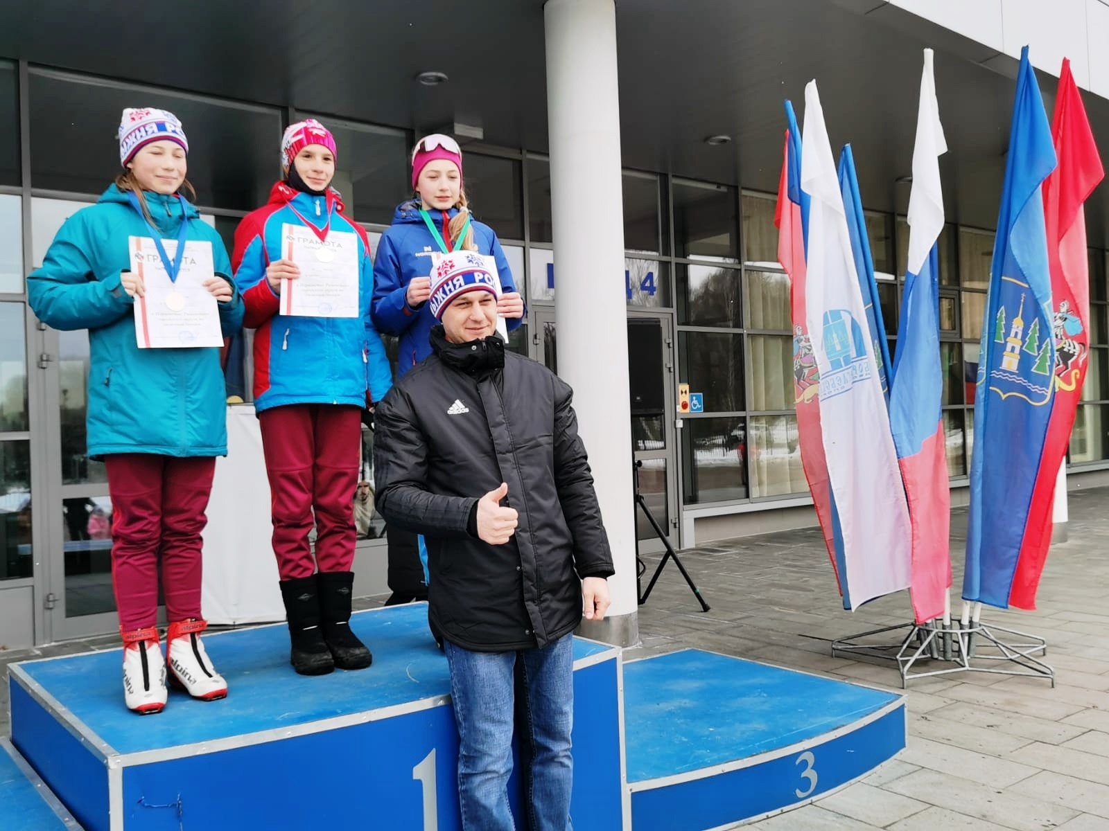 Лыжников поприветствовали заместитель главы администрации Раменского г.о. Ольга Егорова, председатель комитета по спорту и молодёжной политике Леонид Савин, депутат Совета депутатов Раменского г.о. Виктор Пронин и двукратная чемпионка мира по лыжным гонкам Ольга Завьялова.
